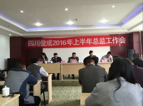 2016年4月9日四川俊成工程項目管理咨詢有限公司在成都市龍?zhí)豆I(yè)園區(qū)維斯頓酒店召開了2016年上半年總監(jiān)工作會議。參會人員包括:公司領(lǐng)導(dǎo)、各項目總監(jiān)及總監(jiān)代表、公司各部門負(fù)責(zé)人。