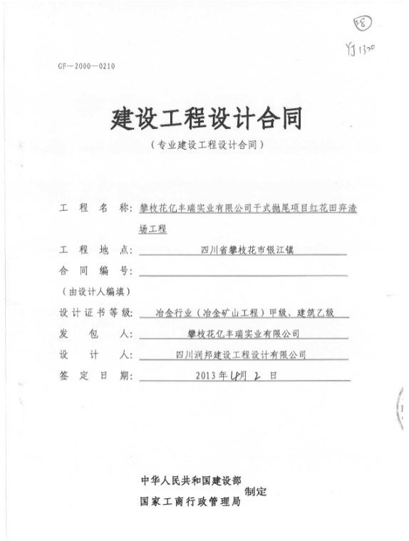 攀枝花億豐瑞實(shí)業(yè)有限公司干式拋尾項(xiàng)目紅花田棄渣場(chǎng)工程