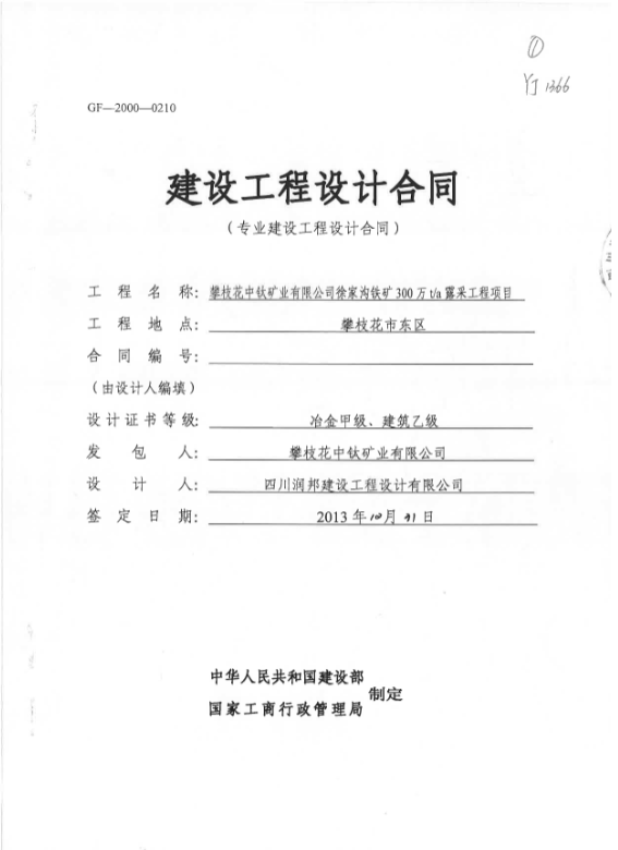 攀枝花中鈦礦業(yè)有限公司徐家溝鐵礦300萬(wàn)t每a露采工程項(xiàng)目