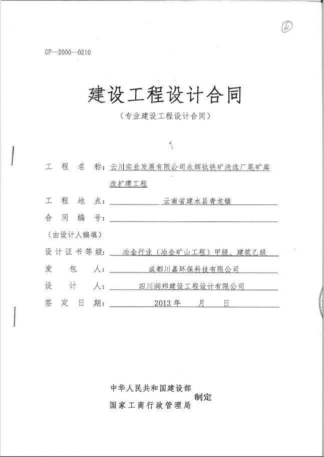 云川實業(yè)發(fā)展有限公司永輝鈦鐵礦洗選廠尾礦庫改擴建工程
