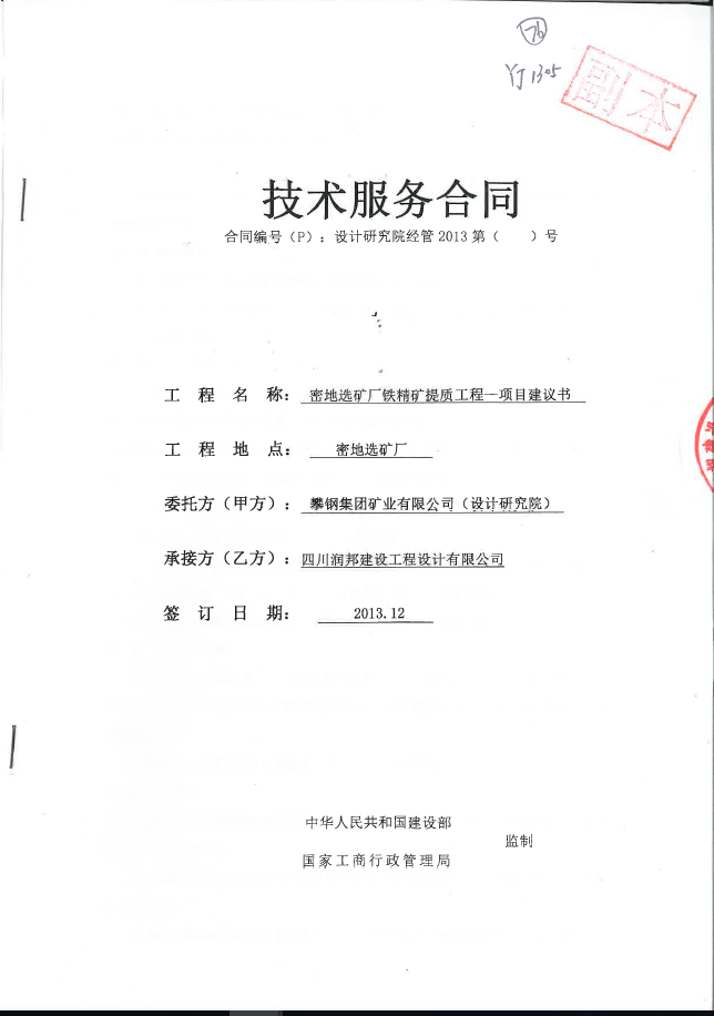 密地選礦廠鐵精礦提質(zhì)工程--項目建議書