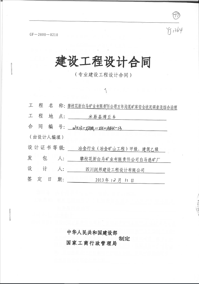攀枝花新白馬礦業(yè)有限責(zé)任公司萬年溝尾礦庫安全狀況調(diào)查及綜合治理