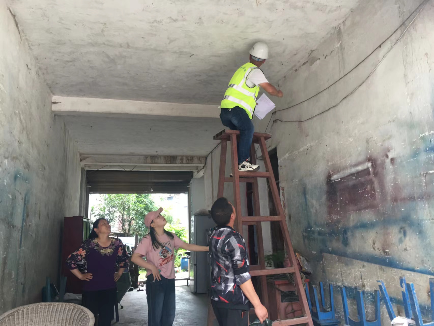 我司災(zāi)后支援團(tuán)隊(duì)據(jù)政府提供的500多戶住戶名單,逐一進(jìn)行場地環(huán)境安全、地基基礎(chǔ)安全、結(jié)構(gòu)部分安全、非結(jié)構(gòu)部分安全等破壞情況應(yīng)急評(píng)估工作。震后評(píng)估工作量大,住戶多,時(shí)間緊,支援團(tuán)隊(duì)盡量壓縮、減少用餐和休息時(shí)間,爭取更多時(shí)間來查看并評(píng)估每棟房屋受損情況。支援團(tuán)隊(duì)在評(píng)估房屋的同時(shí),還為當(dāng)?shù)厝罕娖占暗卣鹩嘘P(guān)知識(shí),安撫百姓情緒,為后續(xù)恢復(fù)重建和房屋修繕加固奠定堅(jiān)實(shí)基礎(chǔ)。